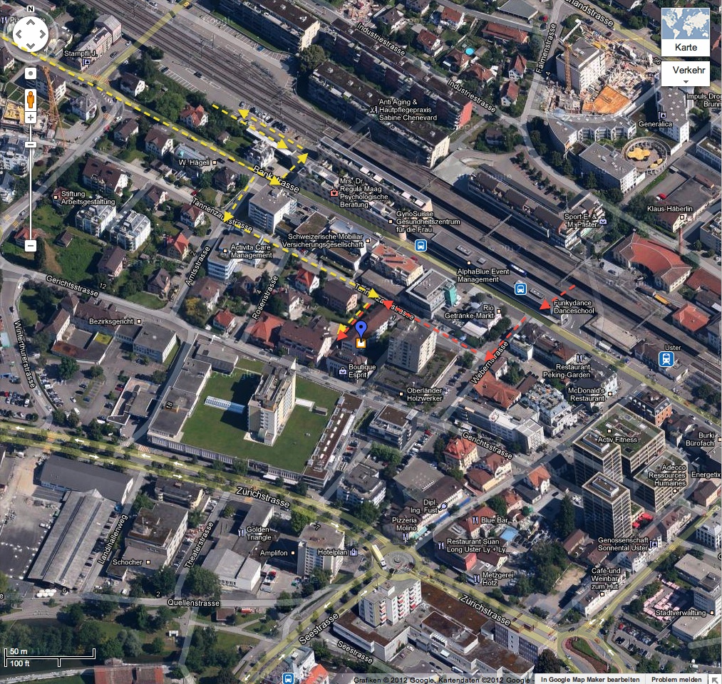 Fussweg-Beschrieb und Anfahrtsweg zum Kursort in Uster ZH: